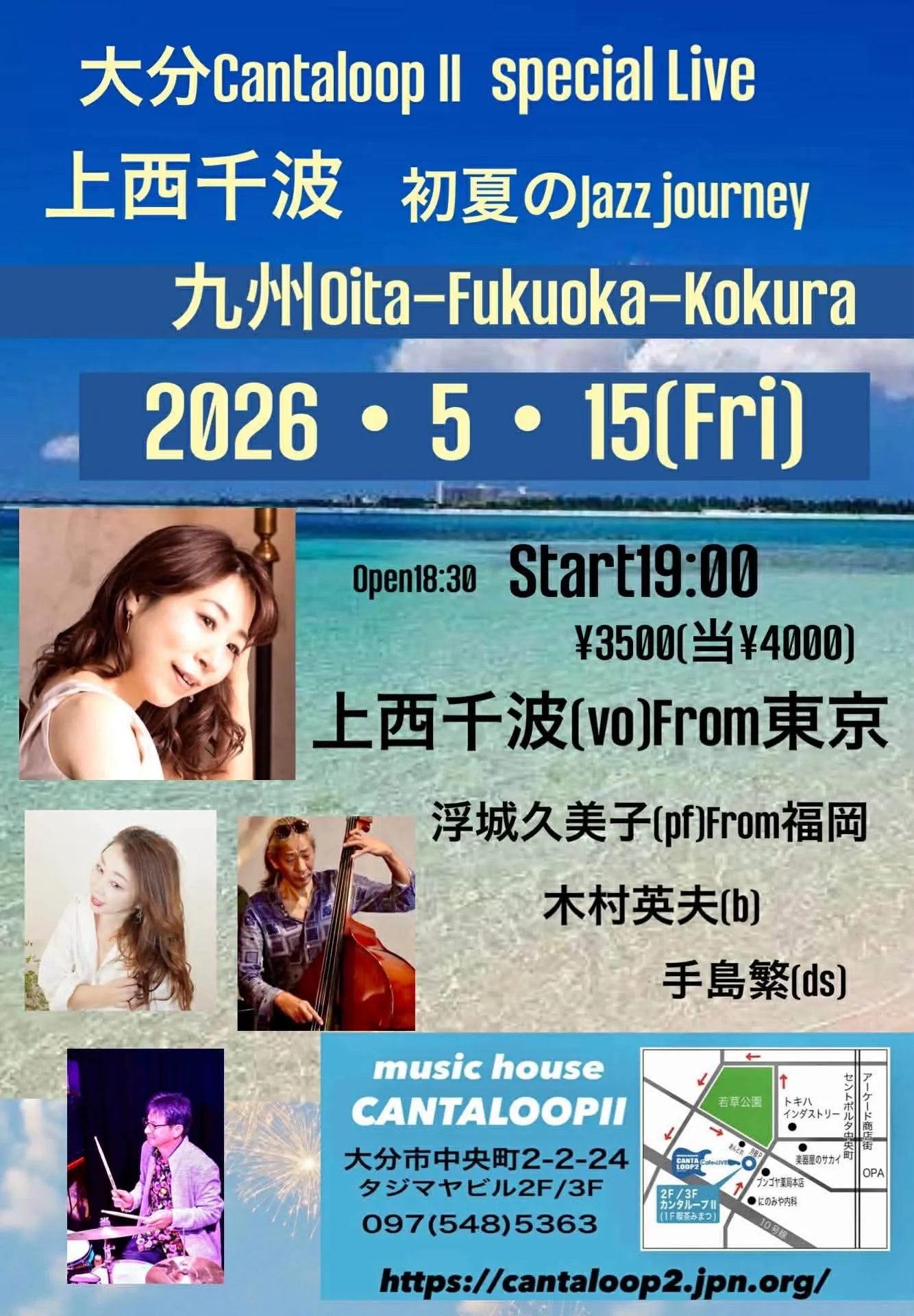 5月ライブのお知らせ 2026/04/27 5月2日(土)大分駅前でビッグバンド「スウィングエコーズ・ジャズオーケストラ」が16時からアトラクションします。無料ですのでお気軽に。16時から 5月15日(金)ボーカル上西千波ライブにドラムで参加します。ドリンク別3,500円 会場は大分市中央町カンタループII 19時から ご都合よろしい方ぜひぜひ🙏